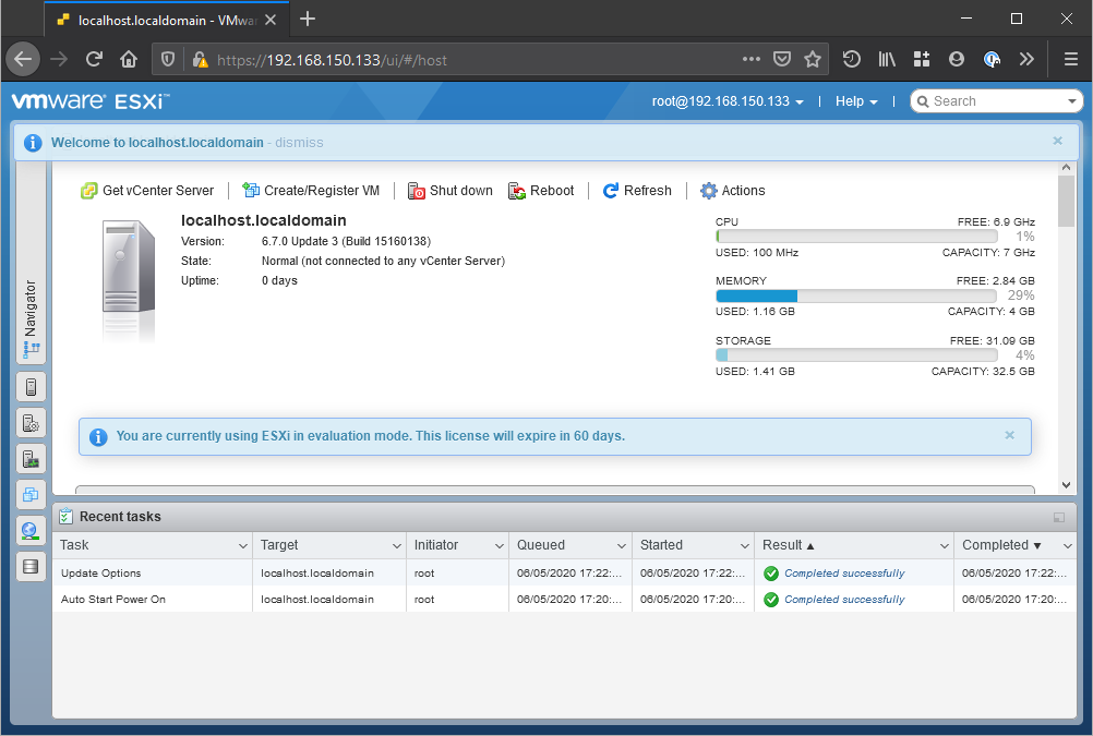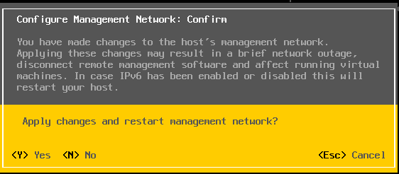 Once you've made those changes, you'll need to restart the management network. Then you'll be in business, you should be able to access your ESXi web interface.