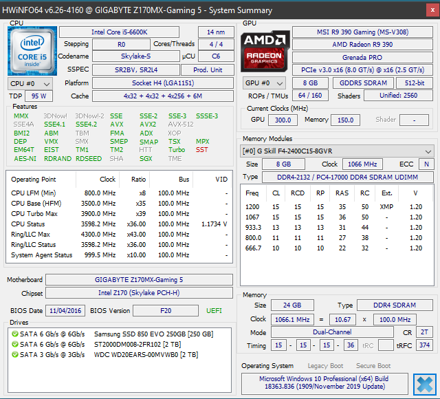 | CPU | Intel i5-6600K @ 3.9GHz |